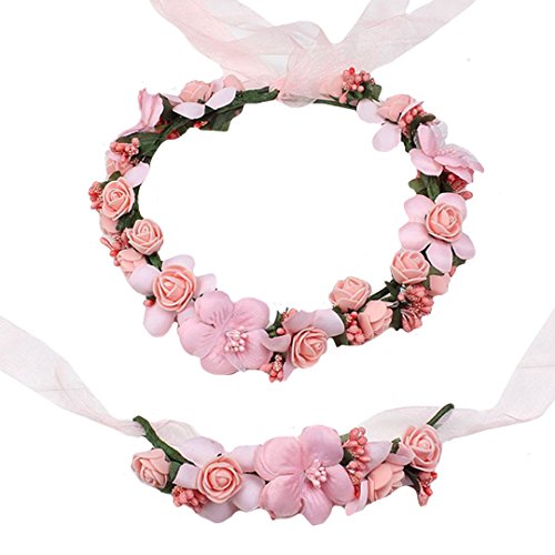 Binding : Apparel Product Description Specification: Material:Cloth and Ribbon,with exquisite workmanship,super comfortable to wear One size fits most Package:1 x Flower Headband,1 x Bracelet Feature: Comes with flower and ribbon design,beautiful flower hairband and matching flower bracelet,makes you elegant and grace Fashion Bohemian style,suitable for most girls who like this kind of style,pleasant colors matching any dress and occasion,floral hairband and bracelet set would made you more graceful and beautiful when wearing it Great for proms, bridal,wedding,vacation,halloween baby showers,festivals and costume 0