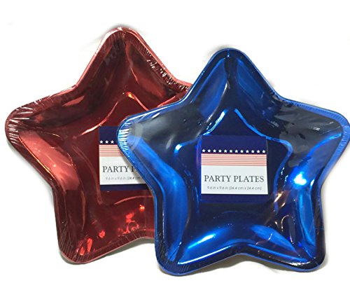 Patriotic Star Shaped Party Plates ~ 24 Plates (Red and Blue)