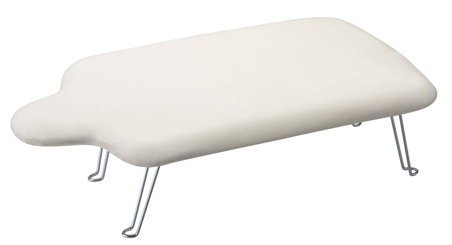 サイズ:約W69XD37XH20cm 本体重量(kg):1.6 表面布:綿100% クッション材:ポリエステル 天板:スチール(粉体塗装) 脚部 生産国:中国 ご注意:他の軽量人体型アイロン台とは違い、フックは付いておりません。