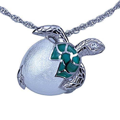 This adorable Hatchling Sea Turtle necklace is the star of the Guy Harvey Artist's Collection. We use the same age old enameling process as Faberge and Tiffany to bring color to Guy Harvey Jewelry. The process used for the Sea Turtle is known as Plique-à-jour which is French for "letting in daylight". It is a vitreous enameling technique where the enamel is applied in openings like stained glass. The turtle's eye is made with a genuine White Topaz gemstone. The necklace comes complete with a sterling silver chain that adjusts from 16 to 18 inches. Each piece comes with a numbered certificate of authenticity and gift pouch. Turtle is 1 inch x 1 inch.Feature