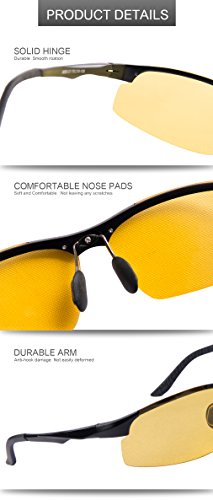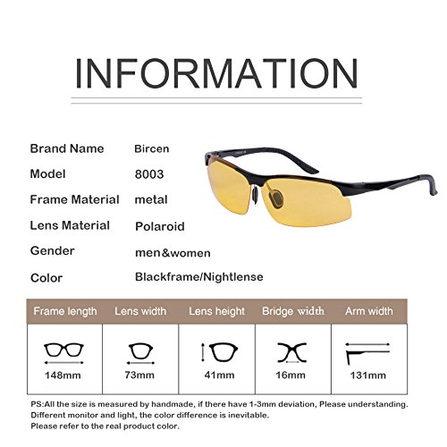 NOTE:The glasses are night vision polarized. In daylight condition, the the polarized effect of the glasses are lower than normal sunglasses, because the glasses are usually used in night. Meanwhile, the shape and material of the lens are manufactured from a mold, but the human's eyeballs, which feel stress of light, color, etc., are difference. Then, each customer's feeling will be different. 0