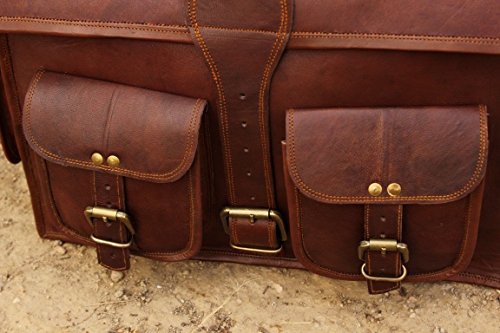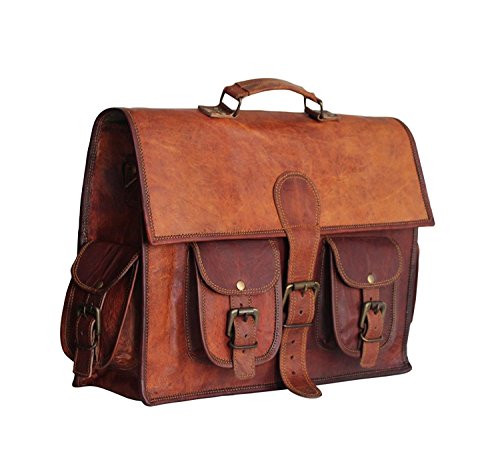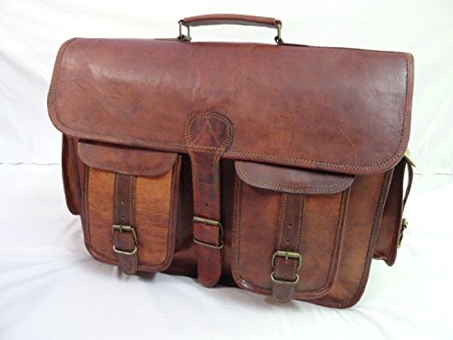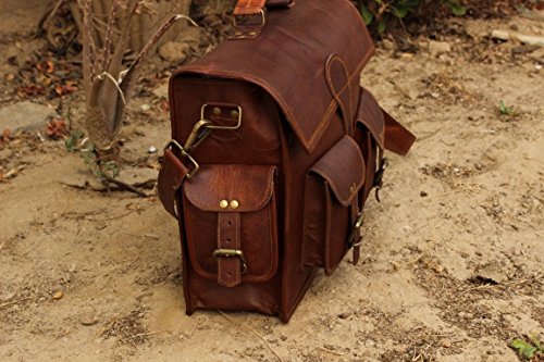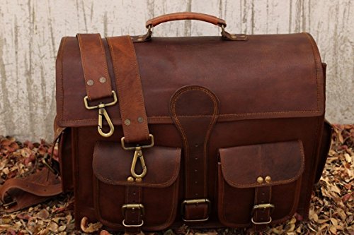 SKH 15" Vintage Leather Messenger Soft Leather Briefcase Satchel Leather Laptop Messenger Bag f...