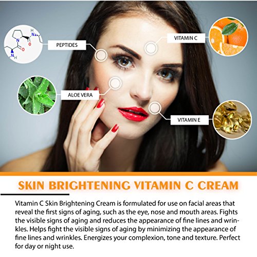 - POWERFUL SKIN BRIGHTENING FORMULA - Supercharged blend of Vitamin C and potent Peptides combine with Orange Peel Extract,Citric Acid, Thyme Extract, Passion Flower, and Aloe Vera for a lightweight, ultra-effective daily facial cream made for all skin types.