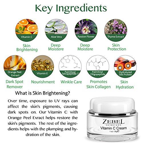 - HIGHEST QUALITY INGREDIENTS - Formulated with only the highest quality natural ingredients, this concentrated Vitamin C Skin Brightening Cream is surprisingly gentle and the perfect solution for even the most sensitive skin types. CRUELTY FREE, and Paraben-Free. Suitable For All Skin Types. Made in USA