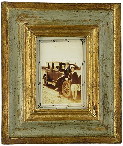 - Vintage inspired distressed wood with a natural stain and a bright gold trim