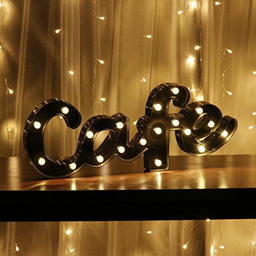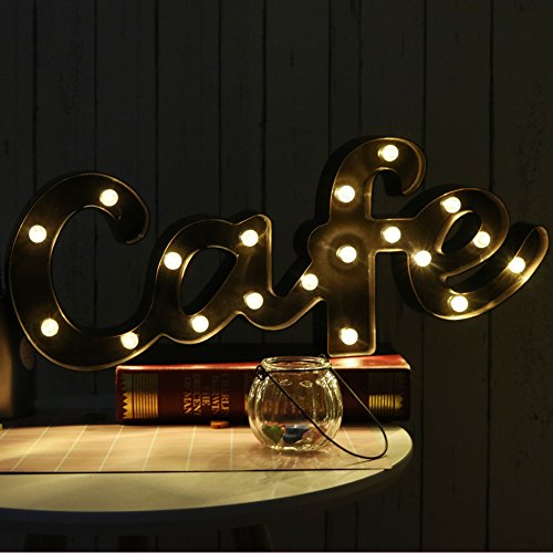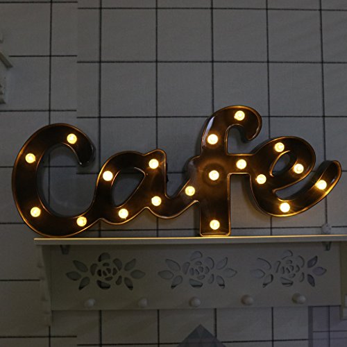 Decorative LED Illuminated Marquee Letter Sign "Cafe" (21.2" x 8.66" x 1.57" , USB or Battery Powered, Warm White) - LED Indoor Decorative Night Light(Cafe - Brown)