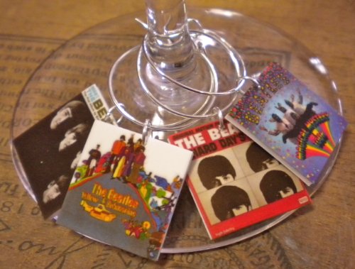 -. Brand : FortySevenGems -. Color : Multicolor -. Feature : Measures Approximately 3/4" All Rings Included / Optional Personalized Gift Card / Includes a Vintage Style Gift Tin / Printed image on plastic with a matte sealant and are water resistant not water proof -. Label : FortySevenGems -. Manufacturer : FortySevenGems -. MPN : 12TheBeatlesAlbumCover -. PartNumber : 12TheBeatlesAlbumCover -. ProductGroup : Kitchen -. ProductTypeName : KITCHEN -. Publisher : FortySevenGems -. Studio : FortySevenGems -. Title : FortySevenGems Set of 12 The Beatles Album Cover Collection Wine Charms