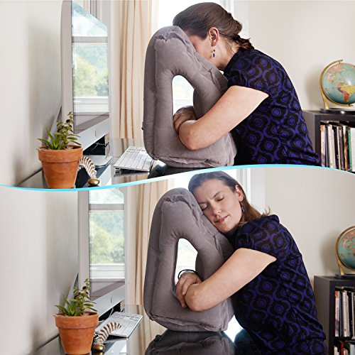 ADJUSTABLE FIRMNESS Since this travel pillow is inflatable, you can choose the firmness. It can be used to prop yourself up on a plane or deflated so that it could be used as a pillow while camping. The holes in the pillow are designed to help you stay comfortable while sleeping.