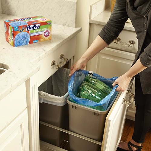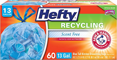 Hefty Recycling Trash Bags (Blue, Tall Kitchen Drawstring, 13 Gallon, 60 Count)