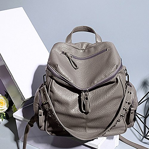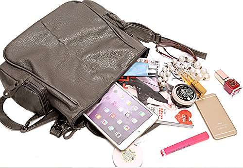 HIGH QUALITY - Ultra soft synthetic washed leather with modern black hardware, waterproof and anti-scratch. 2 adjustable back straps, 1 removable shoulder strap and 1 top loop handle.