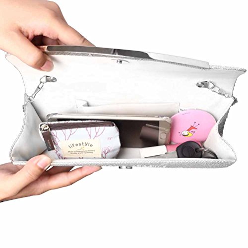 "FASHIONROAD" believes every girl deserve one clutch purse fits her well. We devoted ourselves to design chic and high quality bag for every party girl. Join us, get one "FASHIONROAD" clutch purse, be the Queen of the night Features: MATERIAL: Poleyster CLUTCH SIZE: 10.4 (L) * 3.9 (W)* 2 (H) Inch STRAP LENGTH: 46.49 Inch COLOR: Silver/Apricot/Black INCLUDE: 1 * Clutch Purse Why You Choose Our Clutch Purse < UNIQUE DESIGN & QUALITY GUARANTEE > This clutch purse is made of high quality poleyster, decorated with SPARKLING RHINESTONE, chic and fashion. "FASHIONROAD" is a brand register in US, only sold by "Fashion Road", we guarantee every product quality, you can buy any product manufactured by us without worry < BIG CAPACITY & SAFE CLOSURE > This clutch purse can fit everything you need (cell phone, eyeglasses , coin purse, lipstick, a few bobby pins).Flap with magnetic snap closure, AVOID YOUR BELONGINGS SLIPING < CARRYING OPTIONS & OCCASIONS > You can hold this clutch purse IN YOUR HAND or you can also use it as a SHOULDER BAG or CROSS BODY BAG with the chains coming with the bag (detachable strap is 46.49 inch ). Perfect for wedding, party, prom, just get this clutch purse to have a wonderful night About us "FASHIONROAD" is a US regestered brand, we are a company which is always committed to offer you chic and high quality product. We love our customer, if you have any question, we will always be there trying our best to address any issue for you. Do not hesitate add our product to your cart, our product will never let you downFeature