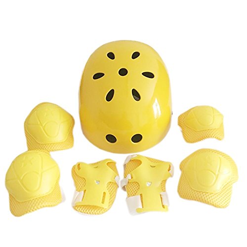 Studio : JOLIN Publisher : JOLIN Binding : Misc. Product Description Materials: ABS EPS PVC Type: Roller Skating Helmet, Bike Helmet Color: 4 colors available Size: Free Size Features: Protective pad set, designed for safety and comfort. The helmet adopts imported high-density foam EPS, imported ABS shell, thickened sponge. Buckles are adjustable. 11 vents for airflow and exceptional ventilation. The pads adopt PVC and thickened breathable fabric, high toughness PE shell, solid and durable. Multiple adjustable elastic straps and Velcro closures for secure fit for various knee girths. 4-IN-1(7pcs) set , Wrist guards, knee pads, elbow pads and helmet included, suit for children between 3 to 12 years old. Suitable for children inline skating, roller blading, skateboard, biking, cycling, and other extreme sports. 0