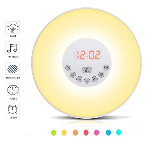Multiple Color Night Light: The wake up light color will automatically change from warm white light to green, indigo, blue, purple, red, orange and keep circulating. It also can act as an atmosphere lamp by selecting 6 colors (Green, Red, Blue, Purple, Orange, Indigo)for your preferences.
