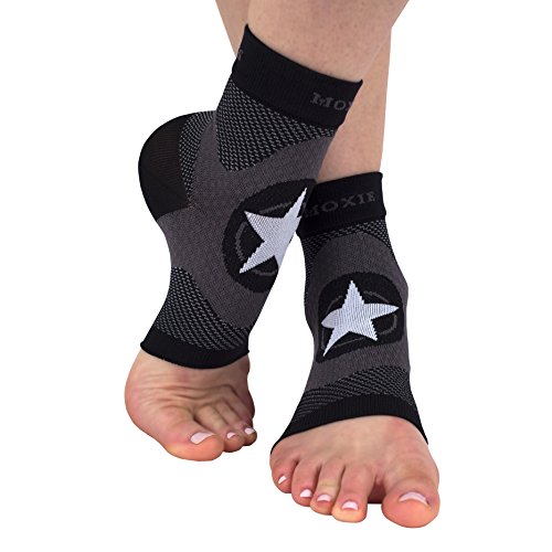 -. Feature : TRUE GRADUATED COMPRESSION: Moxie Fitness Foot Sleeves use TRUE GRADUATED COMPRESSION which Helps Improve Blood Circulation in the Feet and Legs / COMFORT- No painful Grooves and Lines Left Behind on your Skin from Elastic Bands / EASY TO CLEAN- Anti Odor, Anti Static, and Machine Washable / REAL RELIEF FROM PAIN- Provides Relief from Plantar Fascitis Pain & Discomfort as well as Pain Relief from Achiles Tendon, Stress Fracture, and Edema / REAL RELIEF FROM MUSCLE FATIGUE- Reduces Muscle Fatigue Especially for Those on Their Feet for Long Periods of Time or Travel