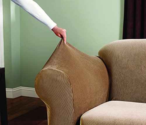 -. Title : Sure Fit Stretch Stripe T-Cushion Two Piece Loveseat Slipcover