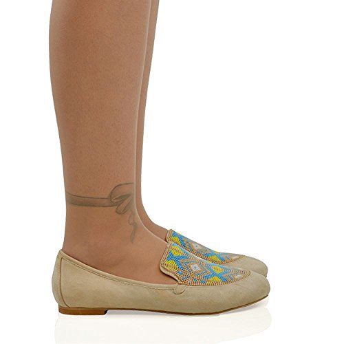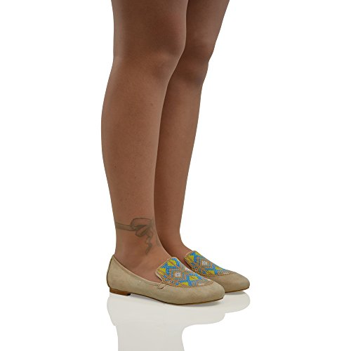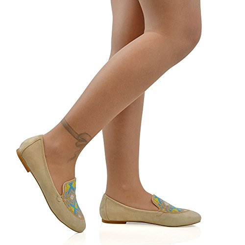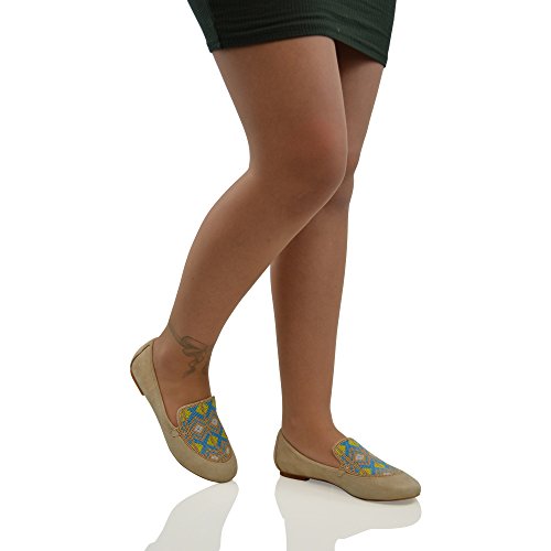 Essex Glam Women's Faux Suede Slip On Aztec Embroidered Beaded Pumps Loafers