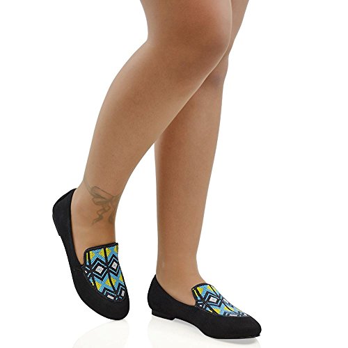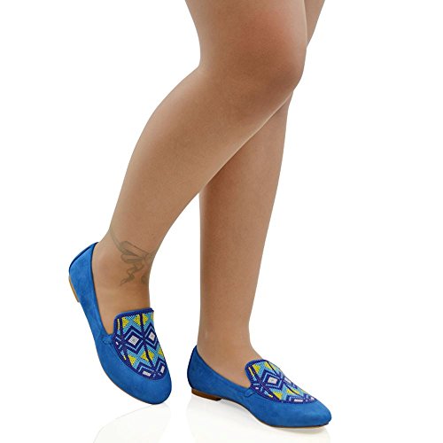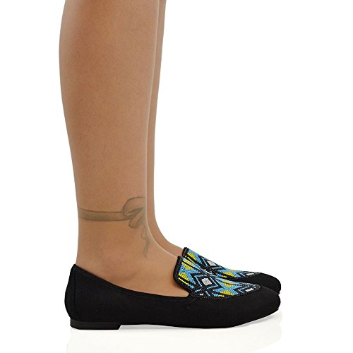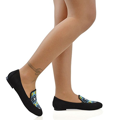 Product DescriptionEssex Glam - Women's Aztec Embroidered Slip On Loafers - Made With High Quality Materials - Unique Multi-Coloured Beaded Embroidery - Available In Colours Black, Blue Nude - Ideal For Casual, Work, School Special Occasions0