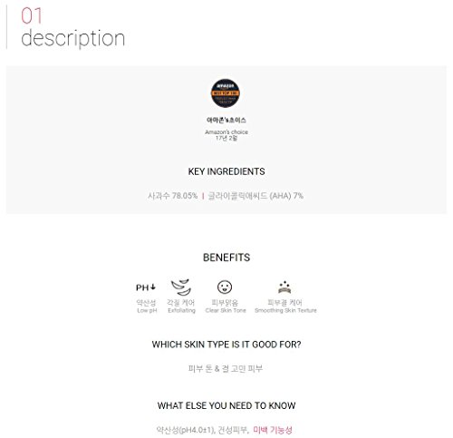 To relieve skin trouble and remove whiteheads, Apple Water containing natural AHA and Glycolic Acid are inclduded.