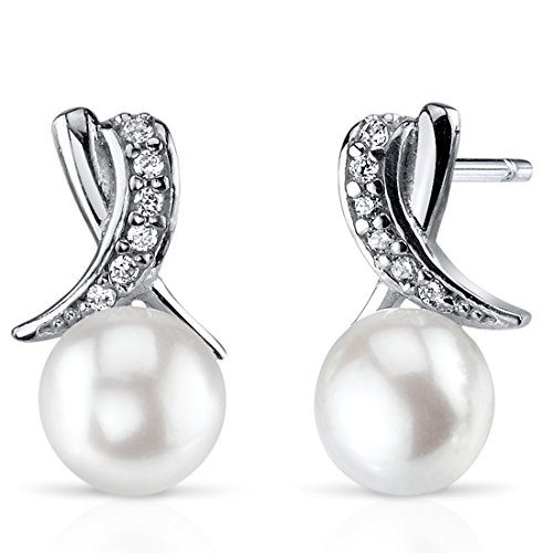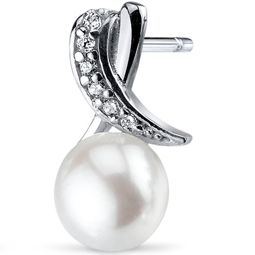 -. Title : Ribbon Design 6.5mm Freshwater Cultured Pearl Earrings Sterling Silver