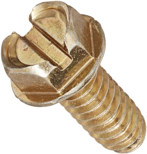 Steel Thread Rolling Screw for Metal, Yellow Zinc Plated, Hex Washer Head, Slotted Drive, #12-24 Thread Size, 1/2" Length (Pack of 25)