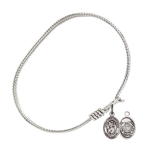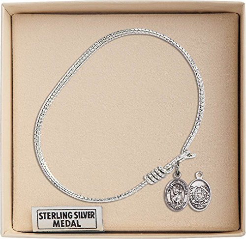 -. Feature : 6 1/4 inch Oval Eye Hook Bangle Bracelet with a St. Christopher/Coast Guard charm. / St. Christopher/Coast Guard / 100% Handmade in the United States, Lifetime No-Tarnish Guarantee / Sterling Silver Medal / Brass bangle with nickel-free thick rhodium plating