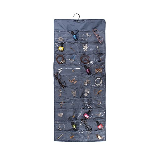 MOT Global Hanging Jewelry Organizer Holder Bag Double Sided Storage 80 Pockets (80 Pockets, Dark Gray)