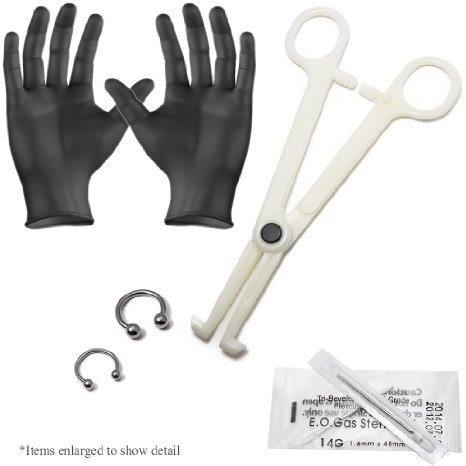 Product Description Septum Piercing Kit 6pc 14gauge and 16gauge Horseshoe Circular Barbells Needles,forceps and Gloves P-k-006 By Eg Gifts ships from florida USA 0