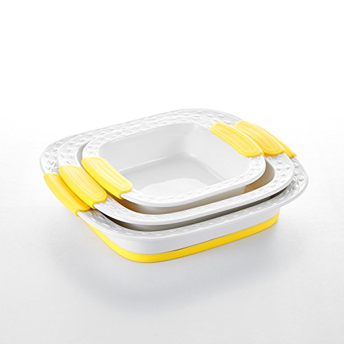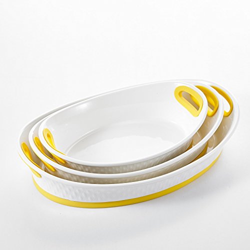 Malacasa, Series Bake, 3-Piece Porcelain Ivory White Bakeware Pans