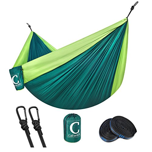 CATWALK Outdoor Double Camping Hammock, Parachute Hammock Portable and Ultralight with Strap &Carabiners