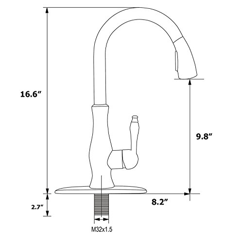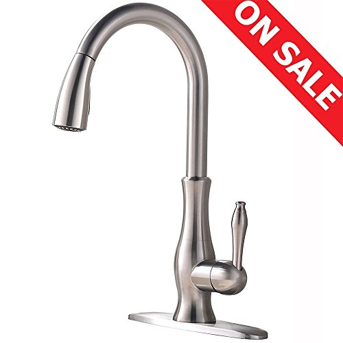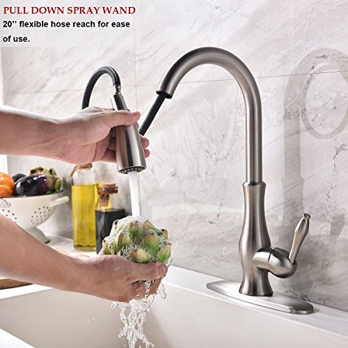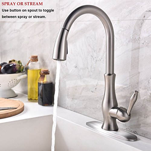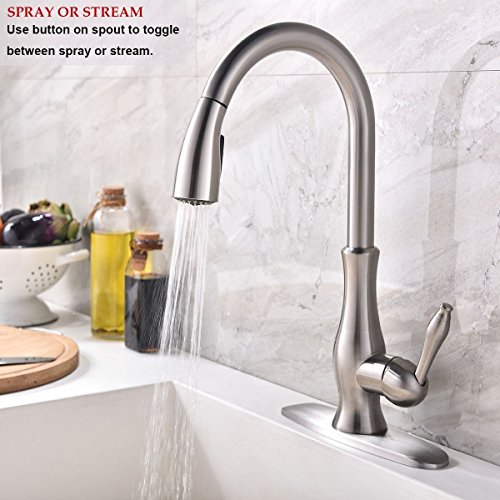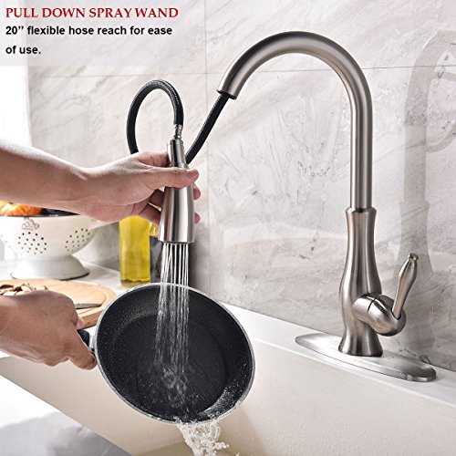 KINGO HOME Best Commercial High Arch Stainless Steel Single Lever Pull Down Sprayer Brushed Nickel Kitchen Faucets, Two kinds of Water Mode (Stream/Spray)