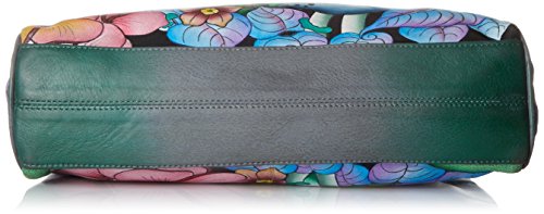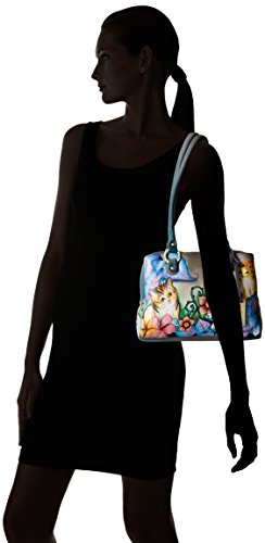 Top zip entry to main compartment. Two compartments with magnetic closure. Inside one full length zippered pocket, one open wall pocket, two multipurpose pockets. Rear full length zippered wall pocket and slip-in cell pocket. Double rope handle with drop 13.5”. 12”x10”x3”
