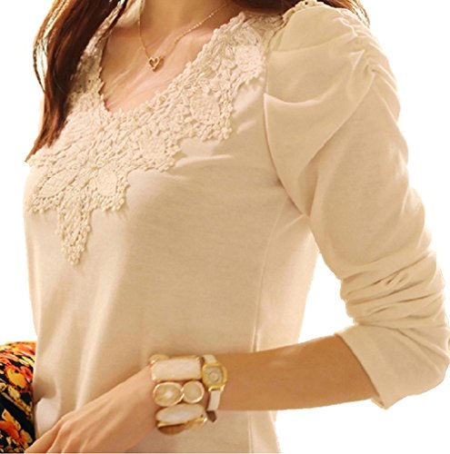 -. Feature : 【サイズ】M 着丈:60cm バスト:82cm ウエスト:70cm 袖丈:57cm 肩幅:37cm L 着丈:61cm バスト:86cm ウエスト:74cm 袖丈:58cm 肩幅:38cm XL 着丈:62cm バスト:90cm ウエスト:78cm 袖丈:59cm 肩幅:39cm / ※平置きにて計測につき、サイズの多少の誤差はご了承ください。 / ※掲載の商品画像と実際の色は、撮影の状況、モニターの表示等により若干異なる場合がありますので、ご了承ください。 / レディース トップス Tシャツ カットソー コットン プルオーバー レース 袖シャーリングです。なだらかなVネックラインに沿うように施された繊細なレースと、さりげなくちりばめられたパールがエレガントに胸元を飾ります。肩口にはシャーリングでふわっとさせ、気になる二の腕をおしゃれにカバーします。ジャケットのインナーとしてオフィス仕様に、ボリュームスカートに合わせてフォーマルに、デニムに合わせてカジュアルダウンでも、1枚でいろいろ着こなせます。
