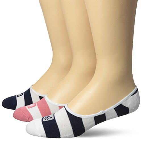 SPERRY Men's 3 Pack Rugby Stripe 1/2 Cushion Canoe Liner Sock, White, 10-13/Shoe Size 6-12