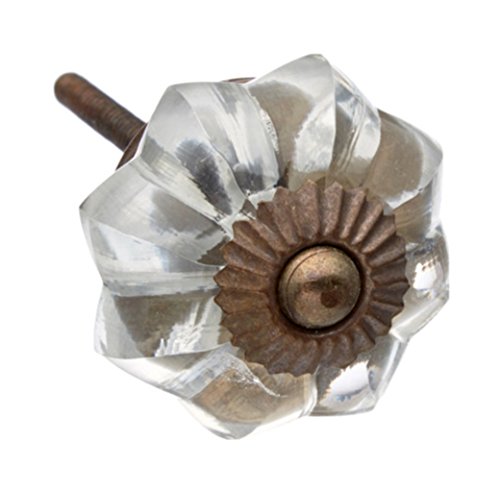 -. Title : Clear Melon Glass Faceted Octagonal Dresser Drawer, Door, Cabinet Knob - Pack of 12
