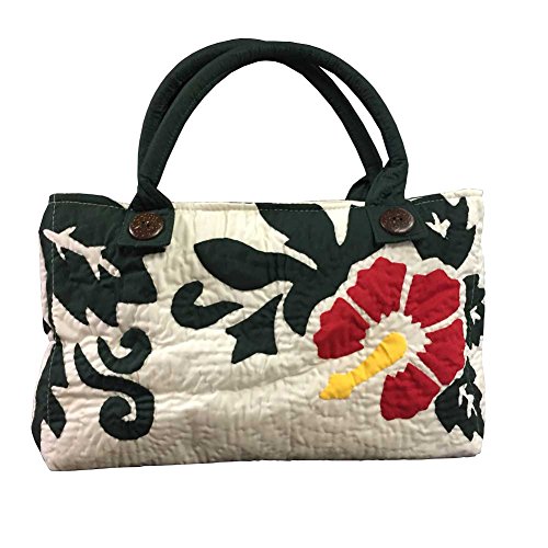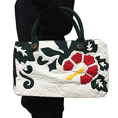 -. Title : ハワイアンキルト ハイビスカス柄ハンドバッグ ホワイト/Hawaiianquilt レディースバッグ 手提げ