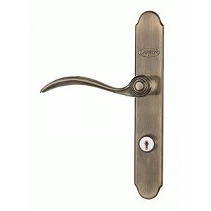 -. Feature : Finish: Antique Brass / For interior and exterior / Installs quickly and easily / Complement your entry storm door / Matching interior and exterior lever handles for an elegant style inside and out