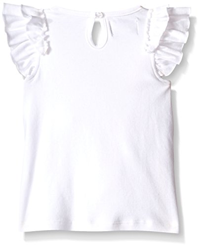 Cotton interlock top features contrasting poplin bunny appliques with pom-pom tails, flutter sleeves and keyhole back.