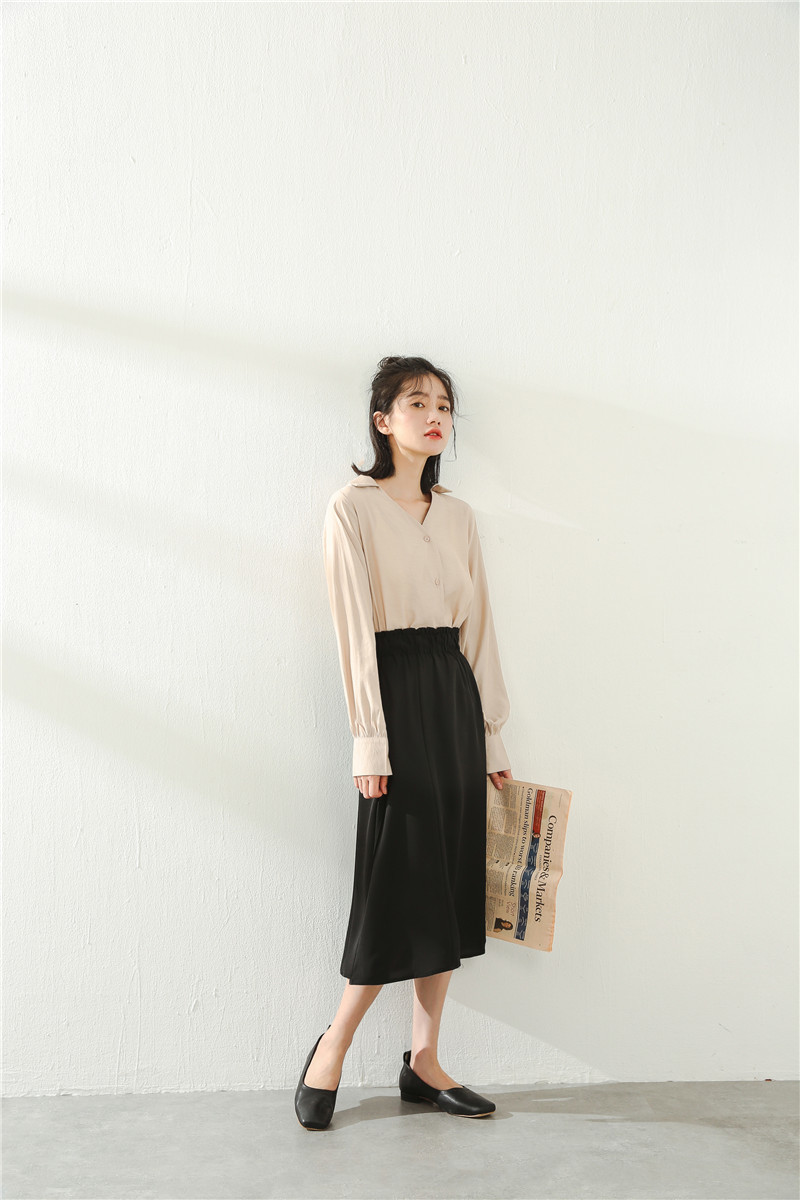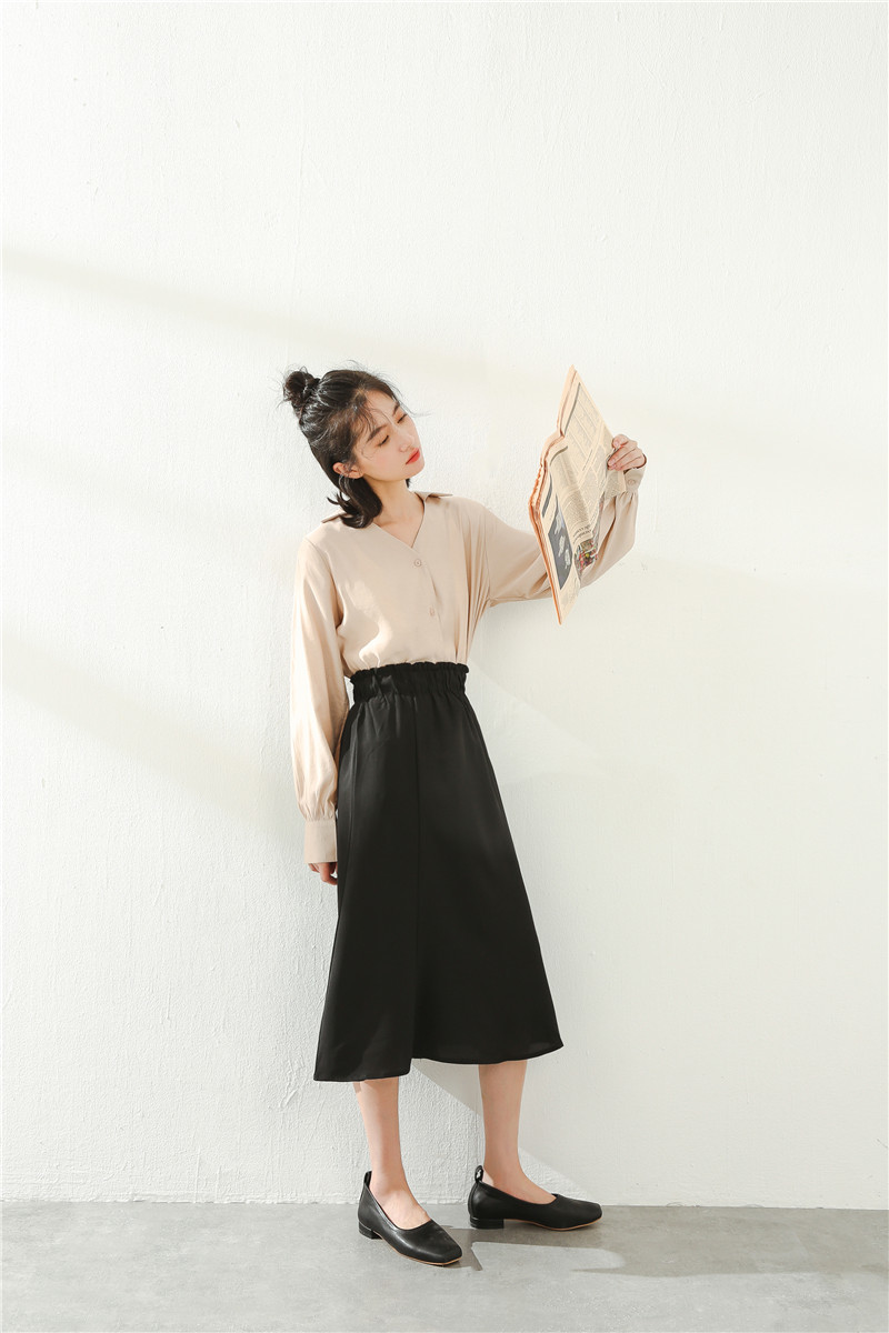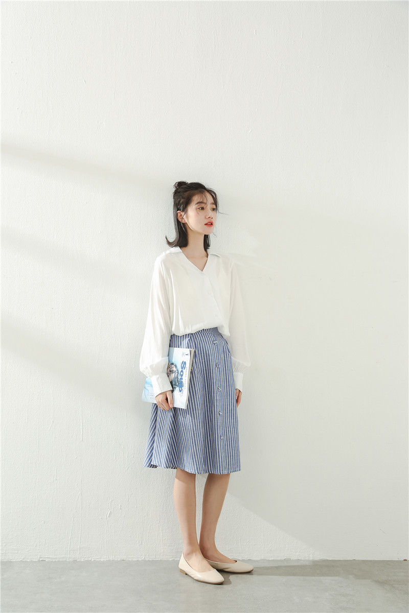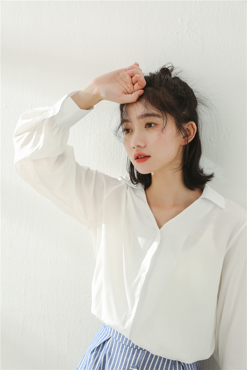デコルテラインが綺麗に見えるVネックなので顔周りもスッキリして見えますね。