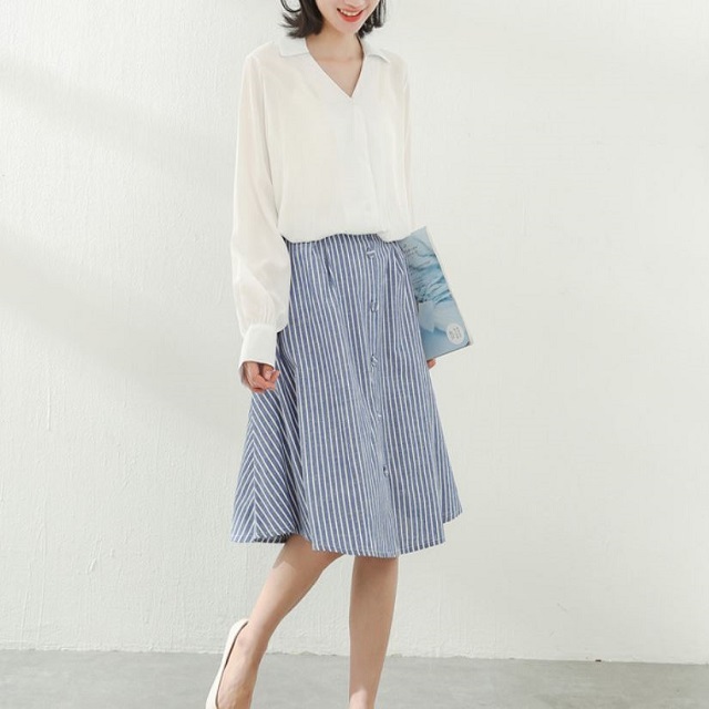 AラインスカートやワイドパンツにINしてバランスよくまとめるのがおススメです☆