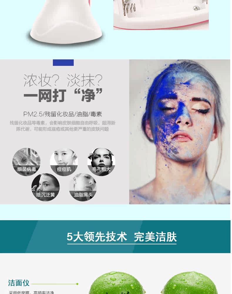 Rechargeable electric face brush cleansing brush cleansing instrument artifact wash blackhead pore cleaner 19822