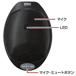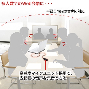 広範囲(集音範囲5m)の音を拾えて多人数での会議に便利な高感度USBマイク。