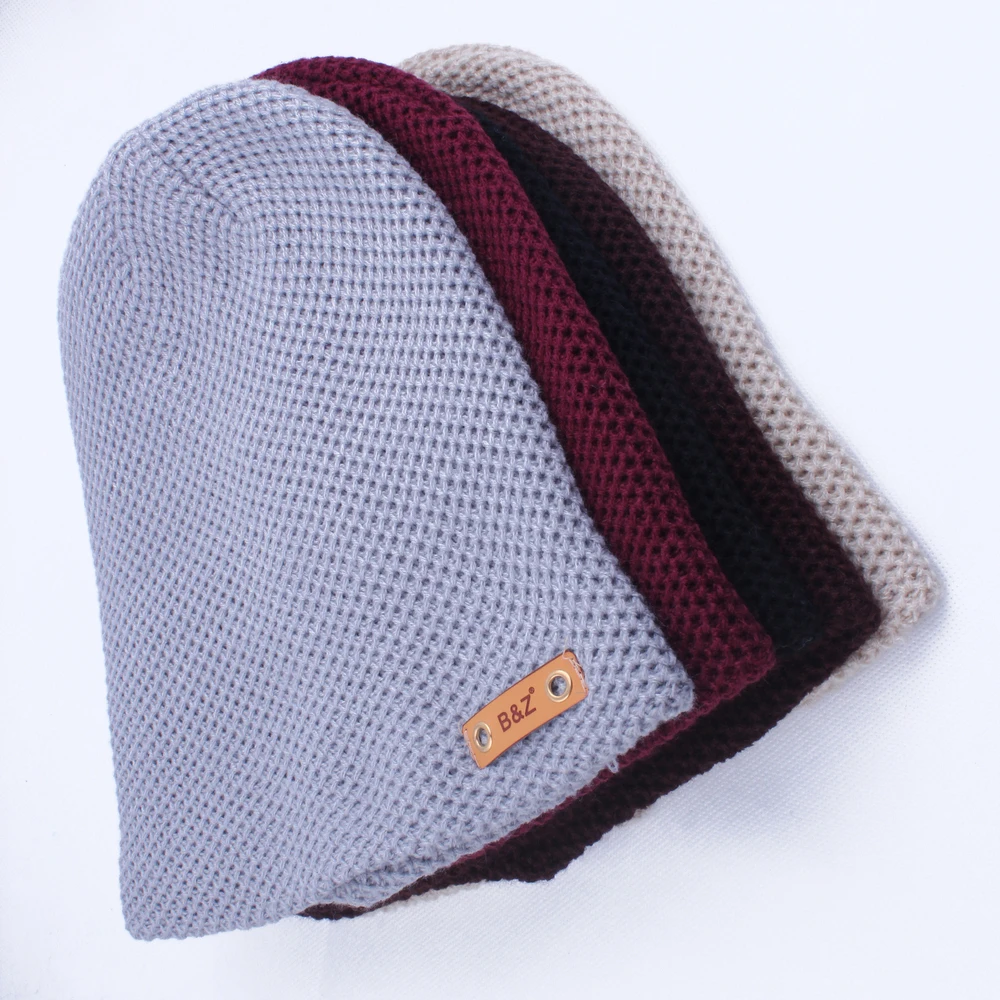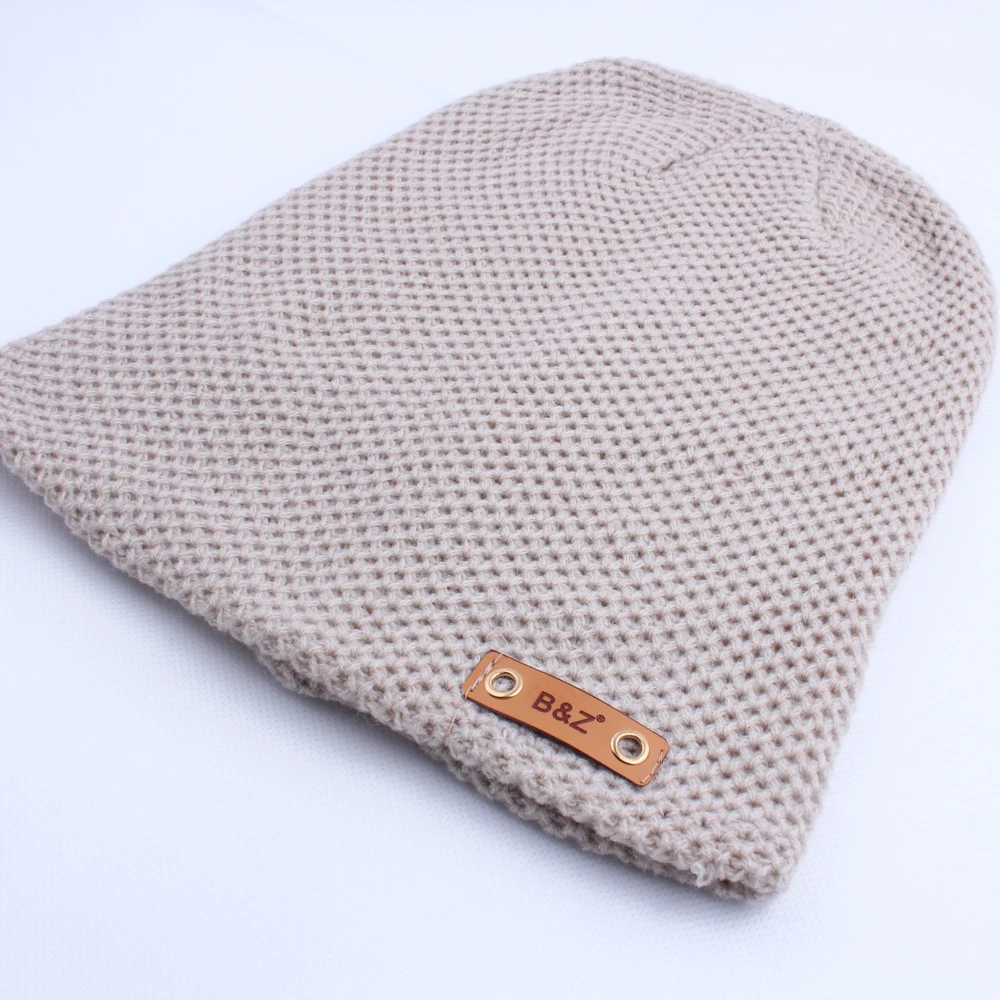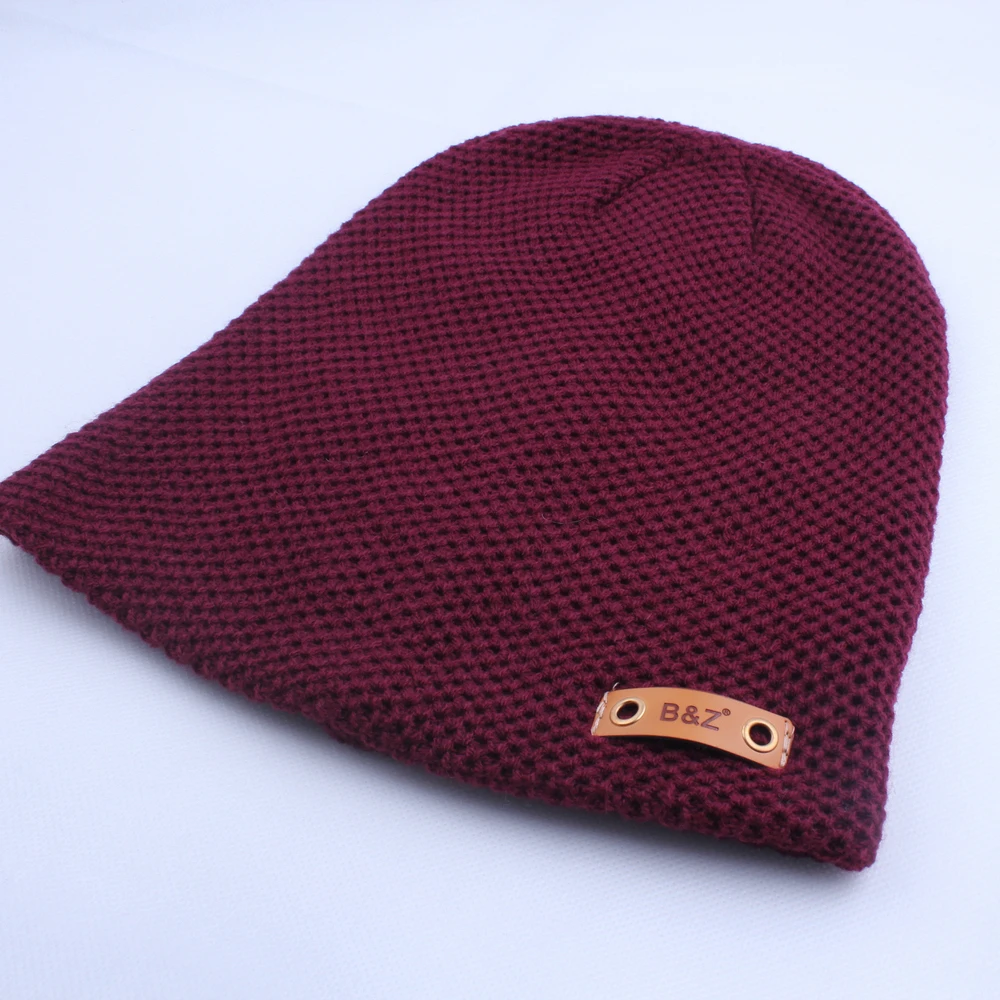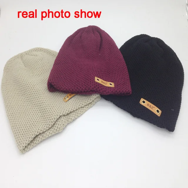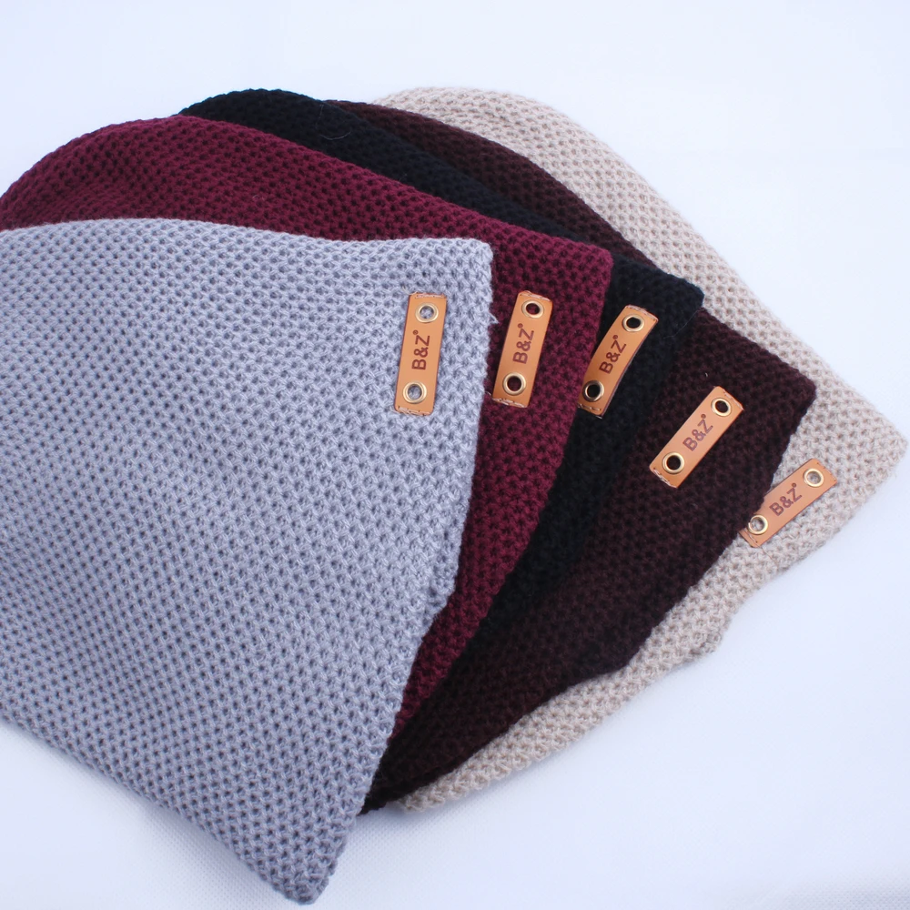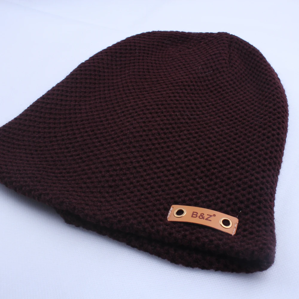 | [해외]새로운 패션 가죽 라벨 장식 모자 힙합 Toucas 캡 니트 모자 비니 Toca Masculina 파라 Inverno |