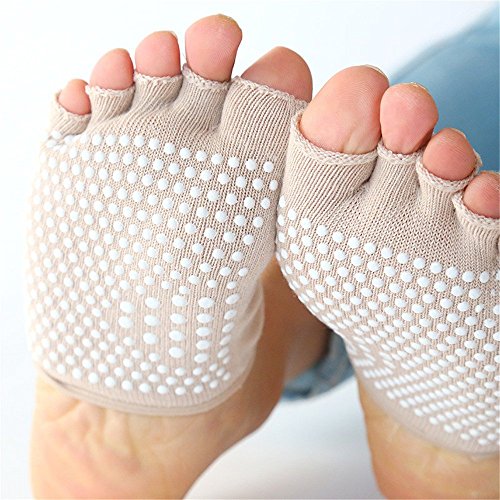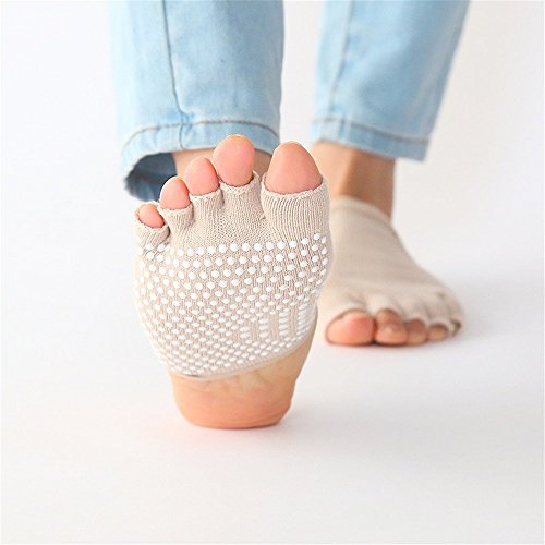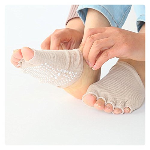 Dr.Koyama 6 Pairs Half Toe Yoga Pilates Gym Socks Toe Separator Non Slip Skid with Grips for Women US 5~11( Pack of 6 Pairs )