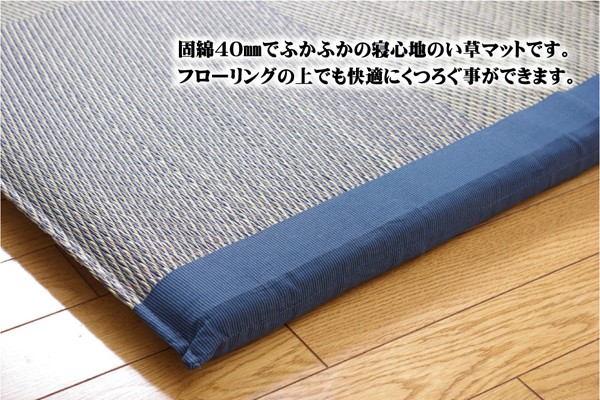 側地=い草(九州産) ※普通織、33目織 中材=固わた40mm ヘリ=綿100%(返し二方)