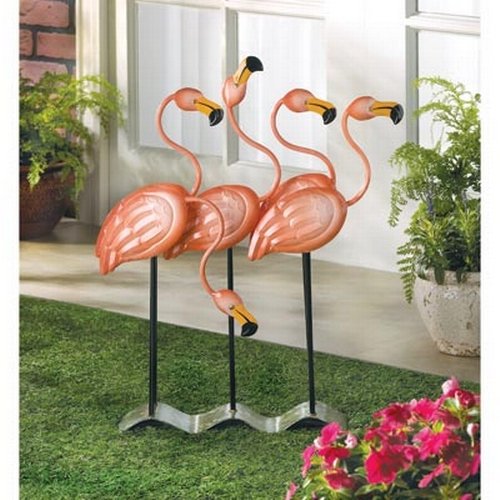 Gifts & Decor Tropical Flamingo Flock Iron Garden Decor Figure