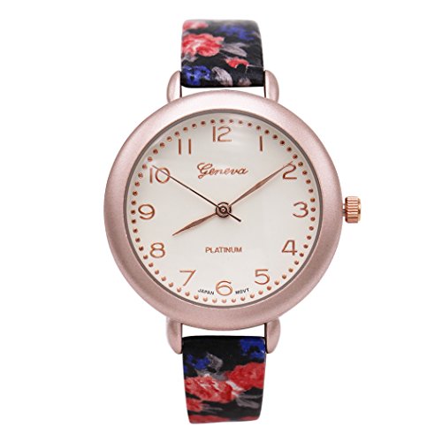 Rosemarie Collections Women's Round Face Flower Band Geneva Fashion Watch