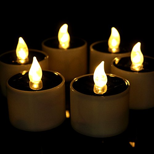 Horeset 6pcs Warm White Solar Power Flickering Electronic Nightlight LED Flameless Candle , Battery Operated Tealights, 2 x 2.3 Inch Smoke-Free for Wedding, Birthday,Party,Outdoor Hiking Camping