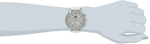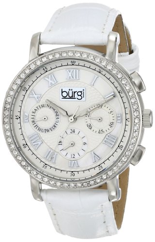 Burgi Women's BUR087SSW Round Crystal Embellished Silver-Tone Watch with White Leather Strap