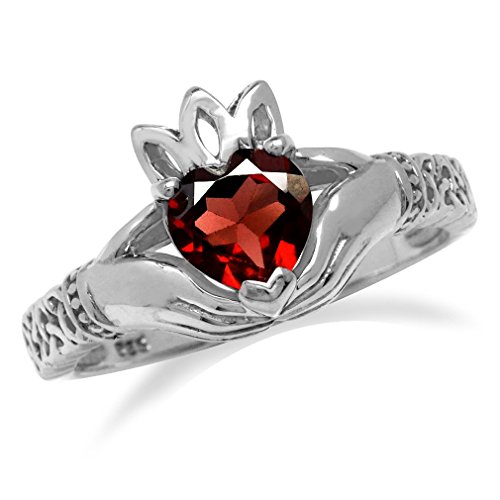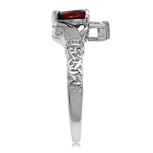 -. Title : Natural Heart Shape Garnet 925 Sterling Silver Irish Claddagh & Triquetra Celtic Knot Ring