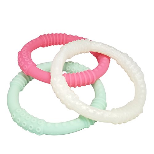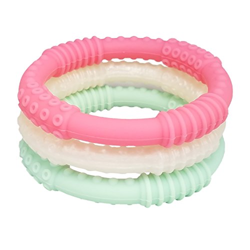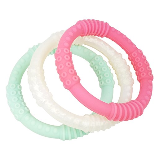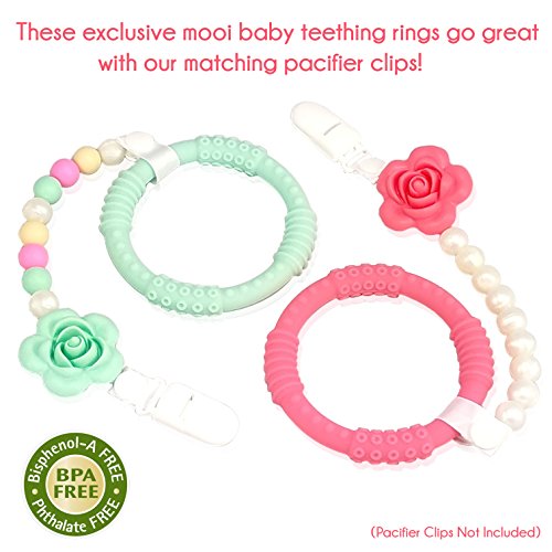Teething Ring 3 Pack - mooi baby - Baby Teething Rings - GIRL Baby Teether - 100% Silicone Infant Teether - No BPA - Non-Toxic - Soothing Gums - Teether Bracelet - Sensory Rings - Baby Teether Rings